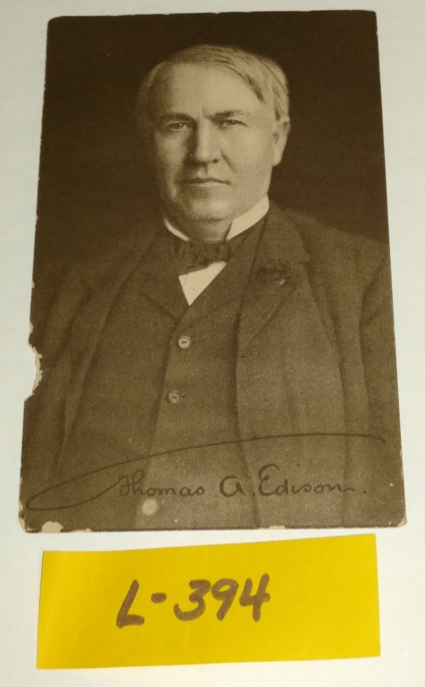 L-394 EDISON Advertising Card. ORIGINAL. No creases; slight chunk missing on edge (see photo).