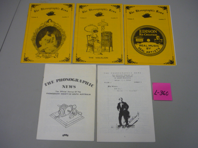 L-360 Back Issues of THE PHONOGRAPHIC NEWS (Australia). (5 issues: Vol.I#1, Vol.I#2, Vol.V#1, Vol.V#2, Vol.V#3) These are the Official Journals of the Phonograph Society of South Australia.