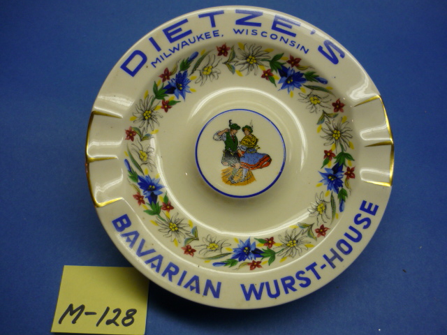 M-128 DIETZE’S Bavarian Wurst Hause – cigarette tray. From Milwaukee, Wisconsin. ORIGINAL, check excellent condition by examining the photos. Collector’s Item. (Third photo taken with flash.)