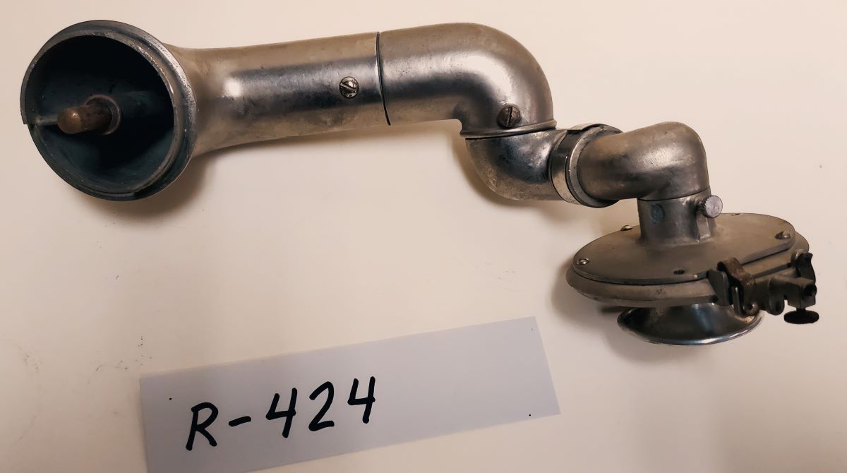 R-424 CARRYOLA MASTER ADD-A-TONE Tone Arm & Reproducer, maybe was used in a PSYCHO-PHONE @ 1927. Shown are three views of this item. Found AS-IS, and Sold AS-IS. Pot metal construction. Missing 1¾ inch round base. This item has not been disassembled. No damages visible. All is ORIGINAL. Reproducer is stamped CARRYOLA MASTER ADD-A-TONE. (Slight bend on horn). Now is a chance to own and learn about this rare brand.